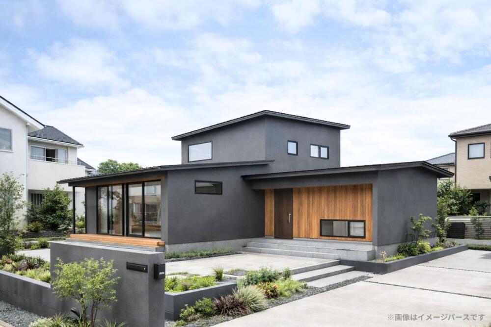 外観は、落ち着いたダークトーンをベースに、木のアクセントを効かせたシンプルな佇まい。