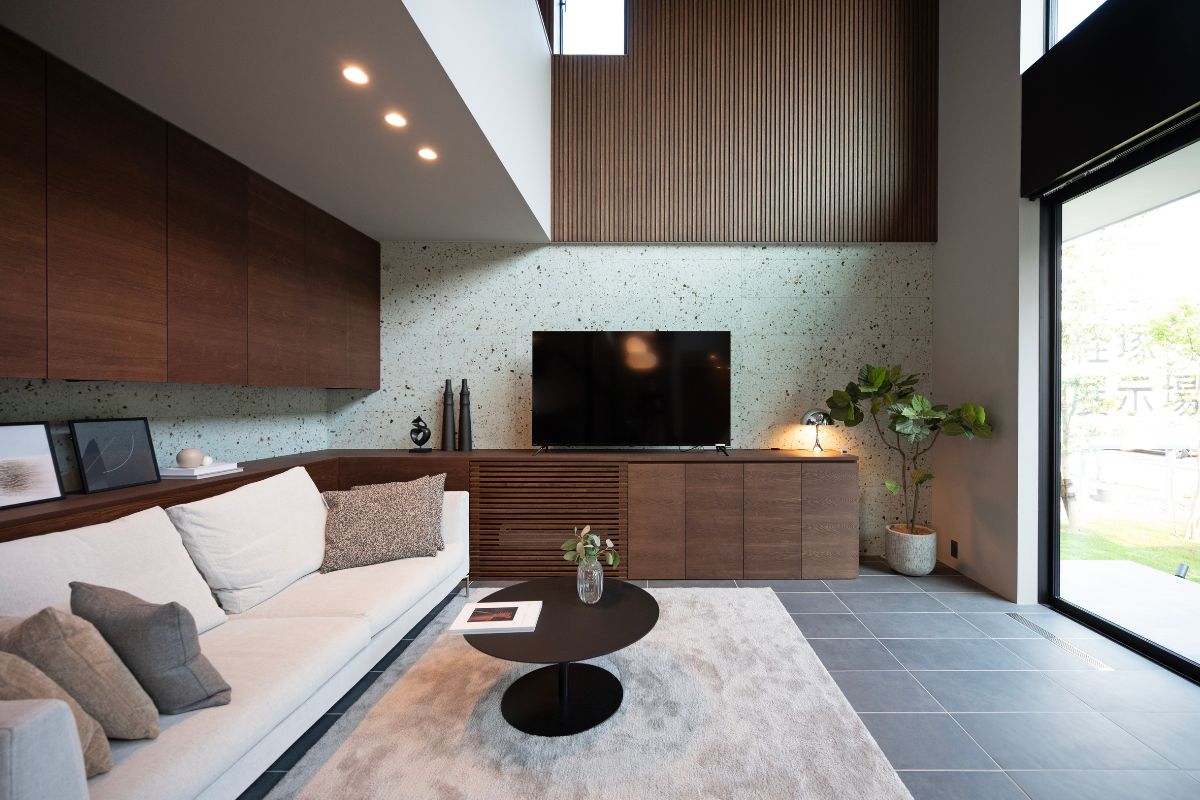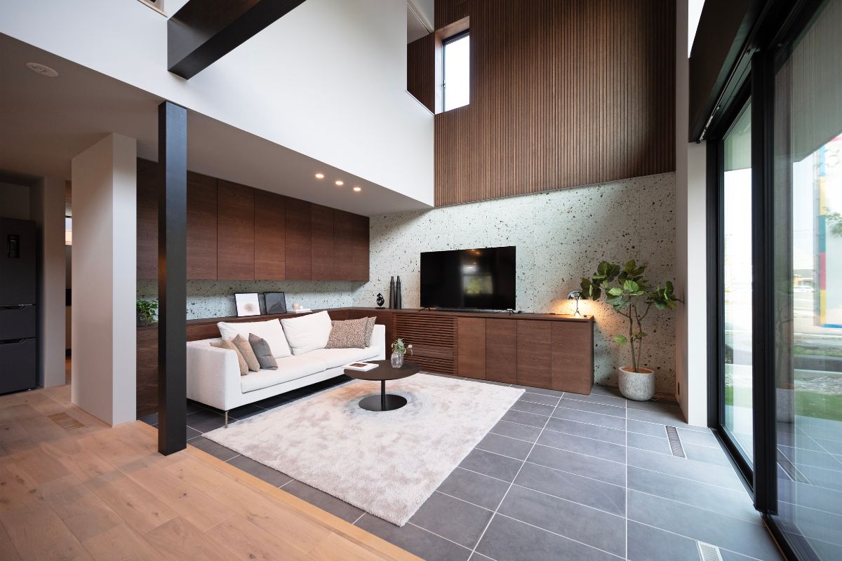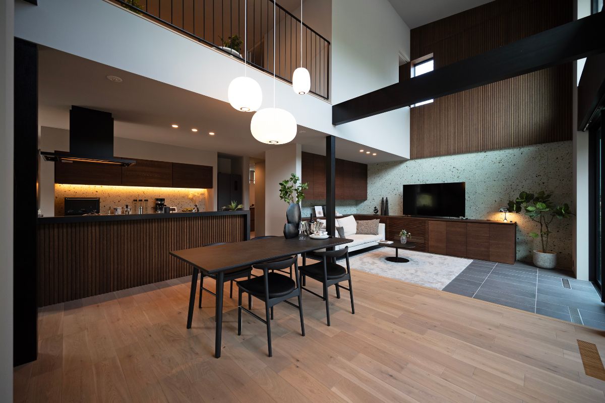 モダンなデザインと開放的な吹き抜け。外とのつながりを感じ、日常が映える特別な空間です。