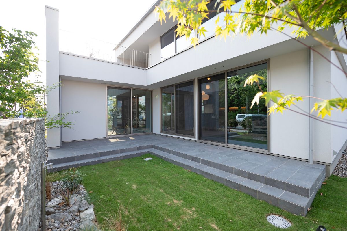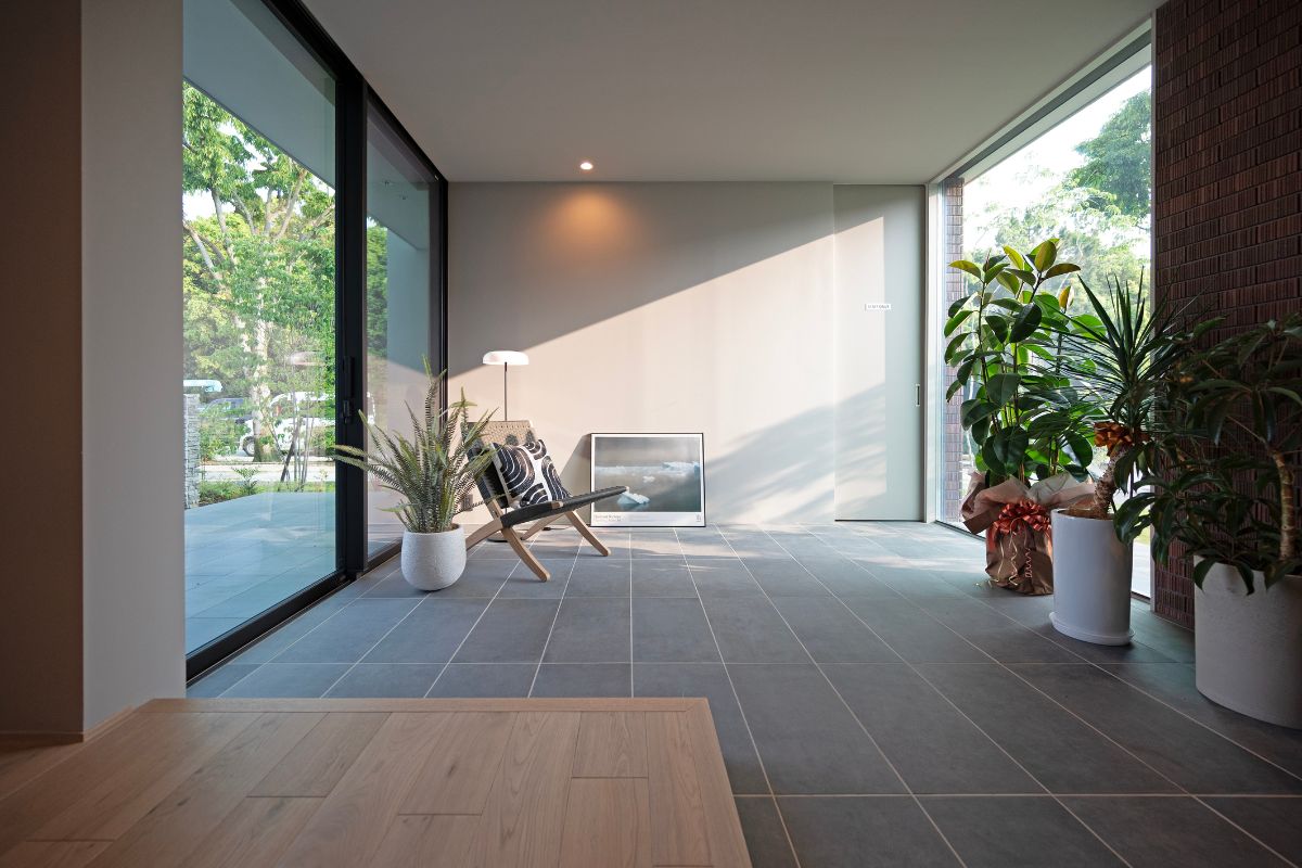 ▶︎リビングとテラスを繋ぐタイルを同じにすることで、家の中と外が自然とつながっているように感じられます。