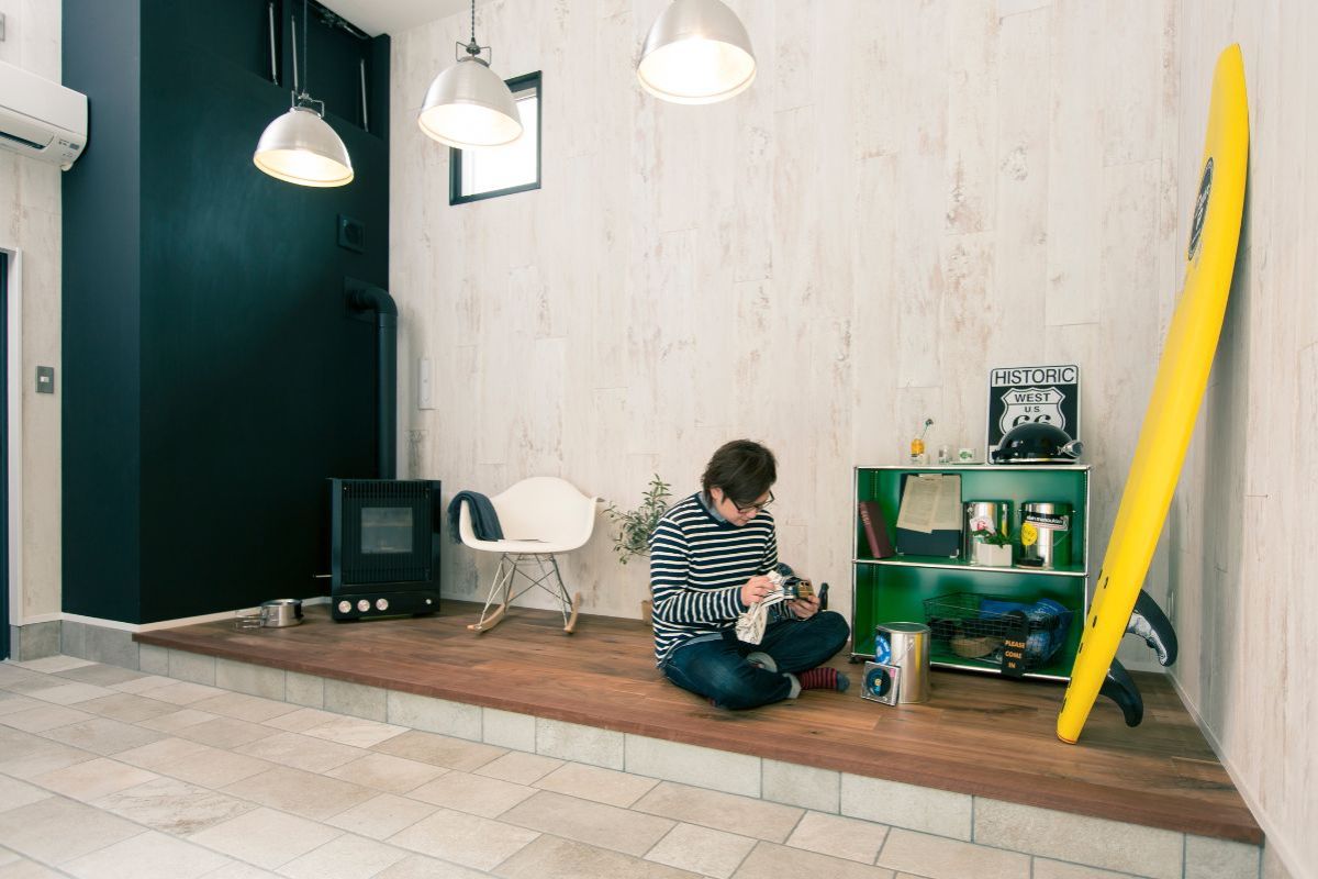 サーフボードを立てかけたり、愛用のギアを並べたり…“自分だけの時間”を贅沢に楽しむ、遊び心あふれる空間です。