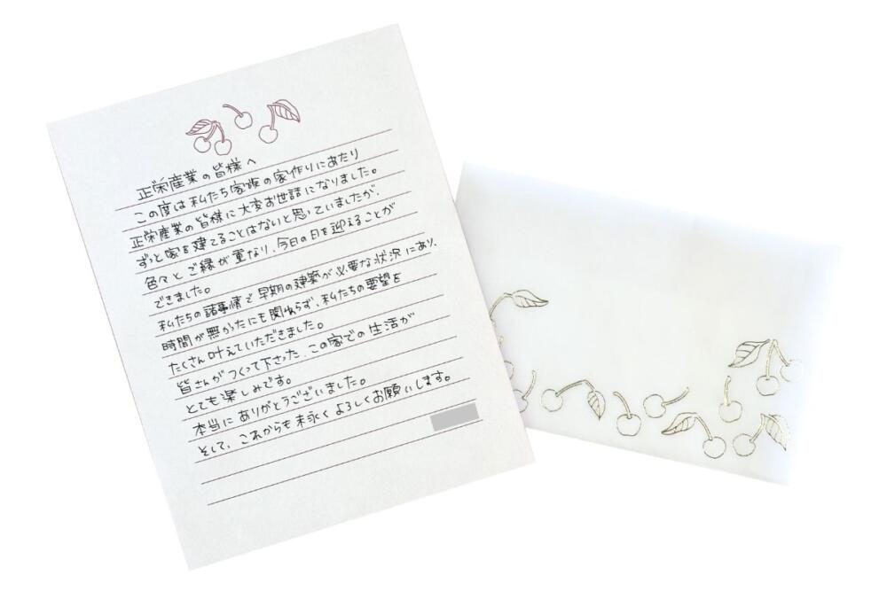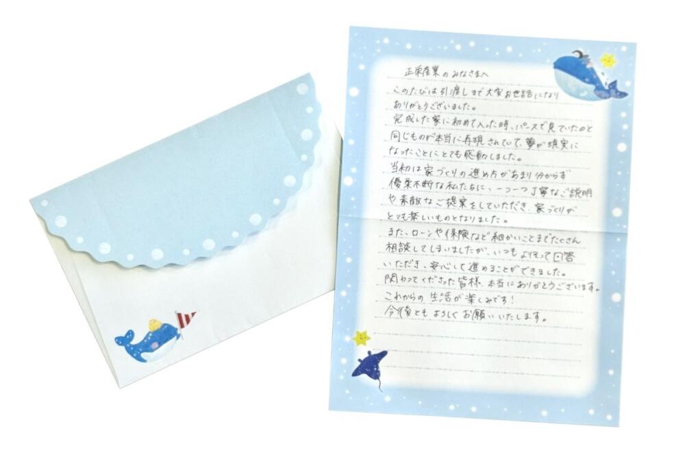 このたびは、私たちの家作りに携わっていただき、ありがとうございました。無事引き渡しを迎えられたことに心から感謝申し上げます。