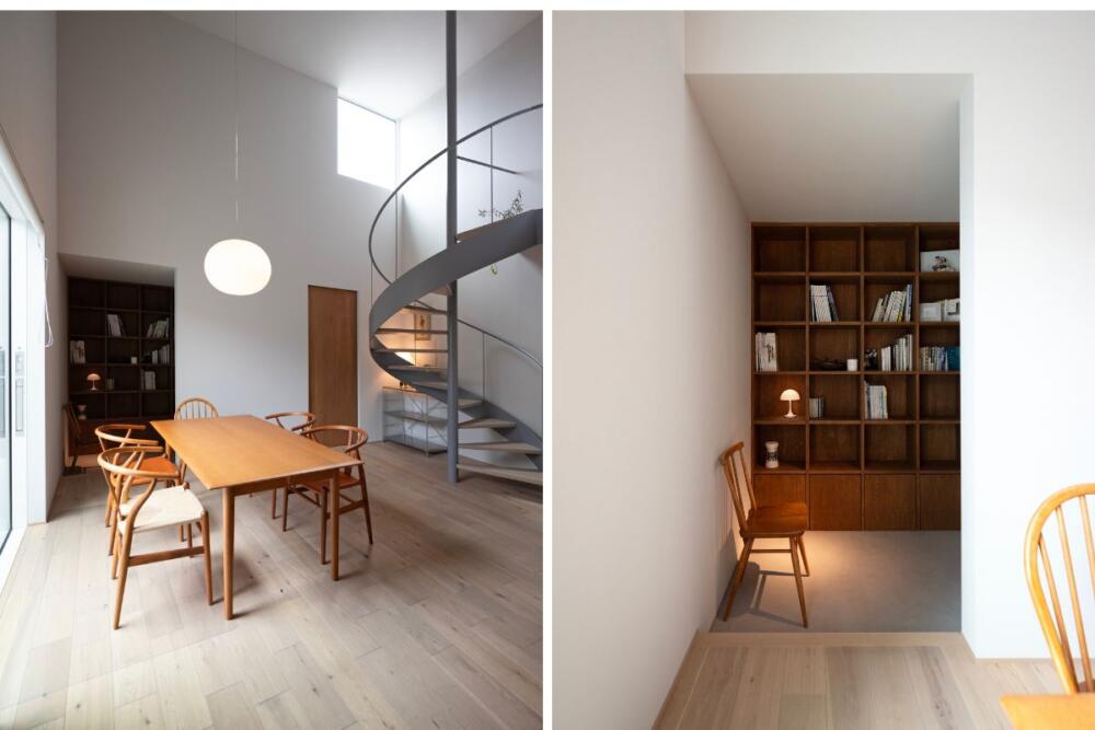「変形地という条件を制約としてではなく、計画の出発点として受け止めたプランニングが際立つ事例。斜めに振った構成や視線の逃がし方によって、敷地の持つ不利な条件を閉塞感として残さず、空間の広がりへと転換している」
