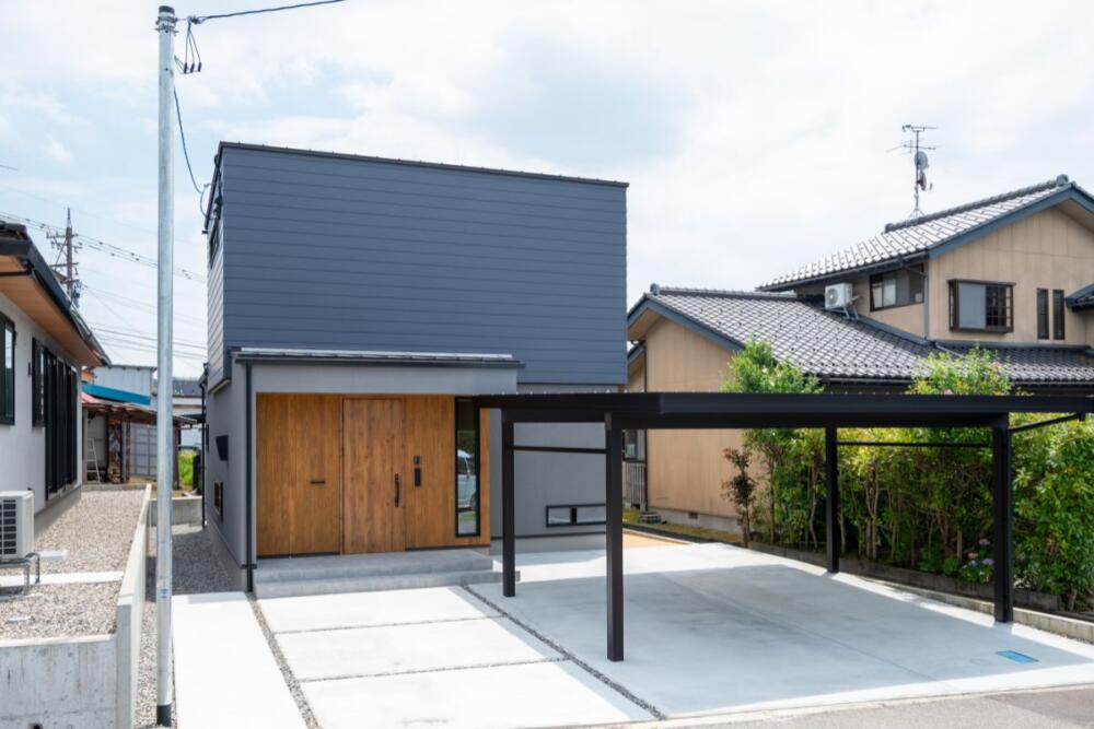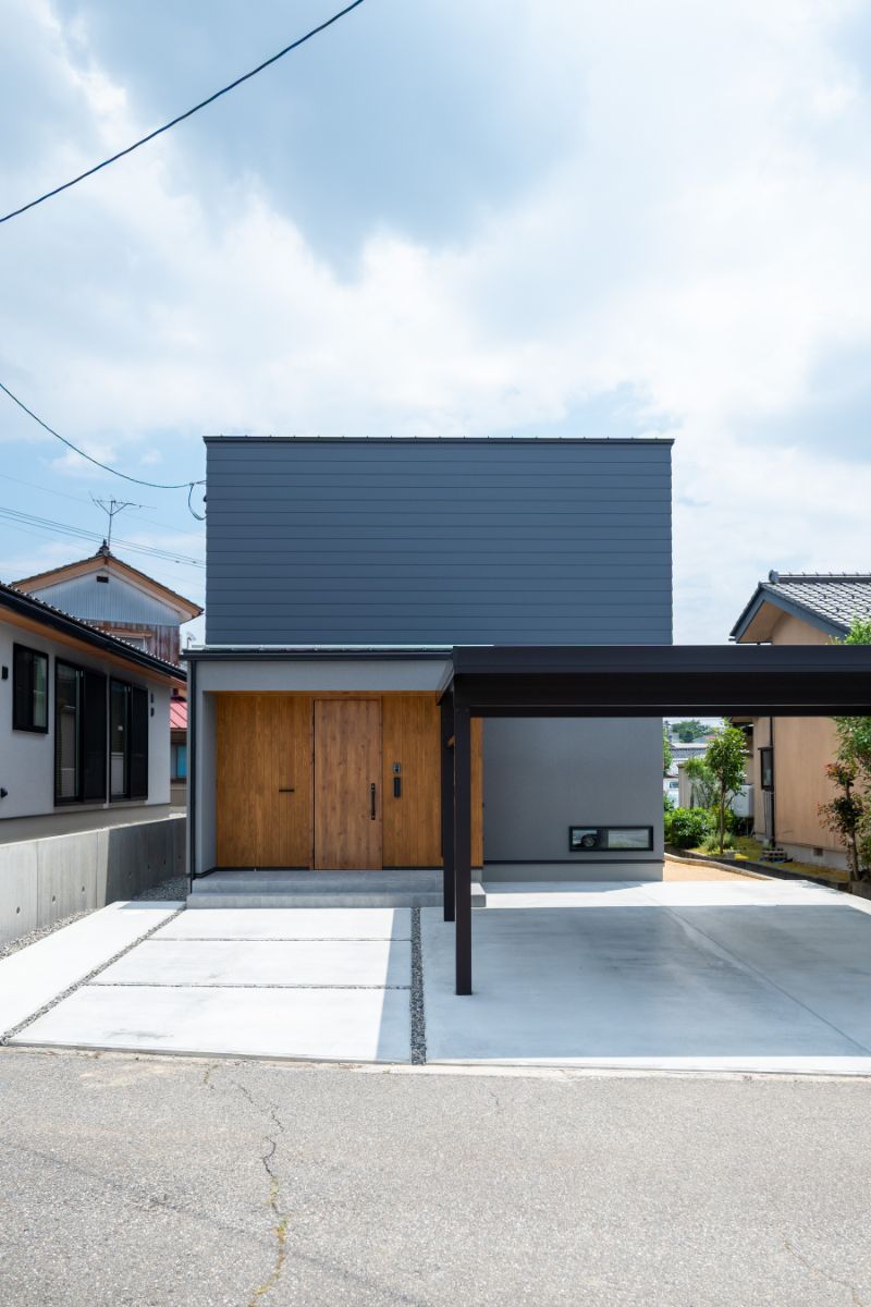 木目の玄関ドアが家族をあたたかく迎え、仕事や学校から帰ってくるたびに“ほっとする”気持ちにさせてくれます。