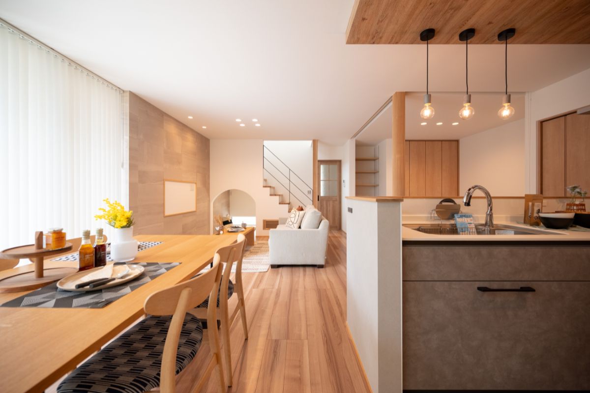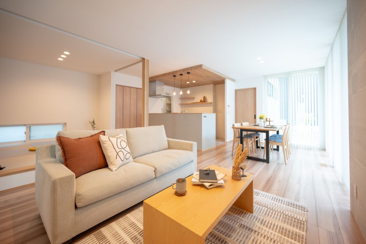 休日の朝、カーテン越しに光が差し込むリビングに自然と家族が集まる。料理をする声、笑い声がひとつの空間に溶け合う心地よさ。