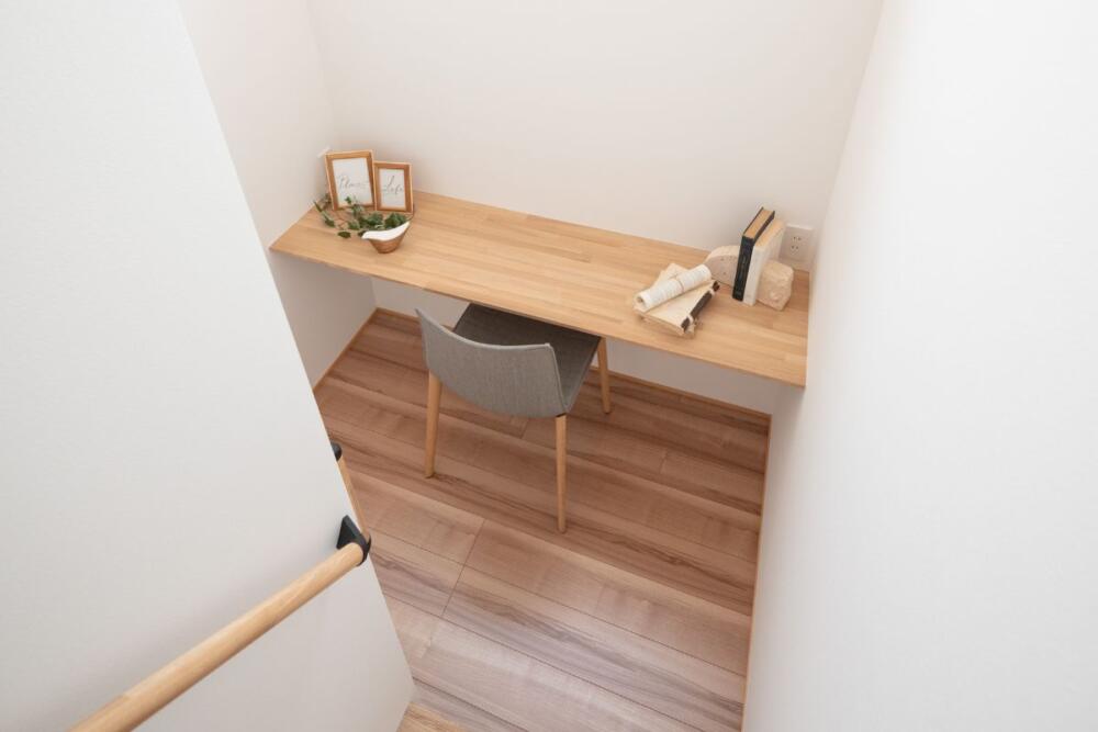 階段の踊り場に設けたワークスペースは、テレワークやお子さまの勉強にちょうどいいコンパクト空間。