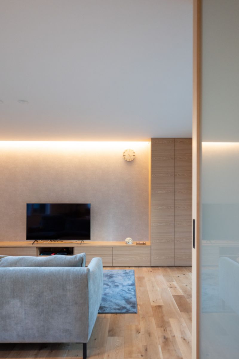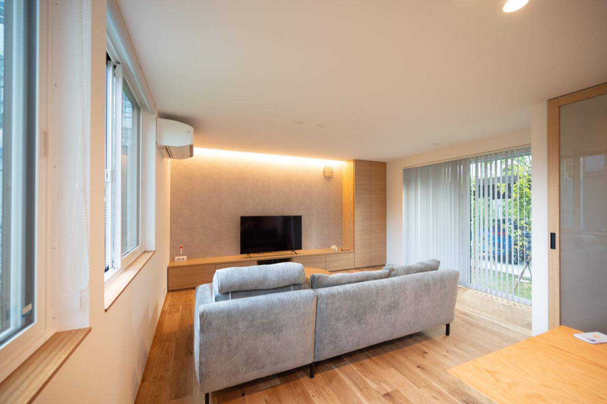 リビングには大きな窓がありながら、直射日光は入らない設計。