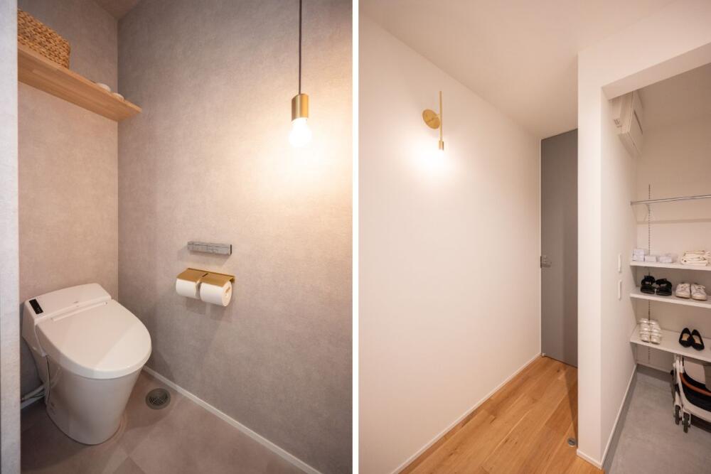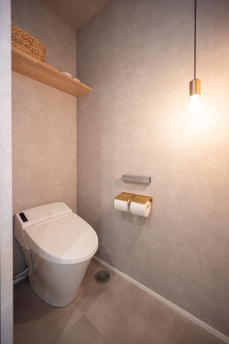限られた空間だからこそ、色味や照明のバランスにこだわったトイレ。