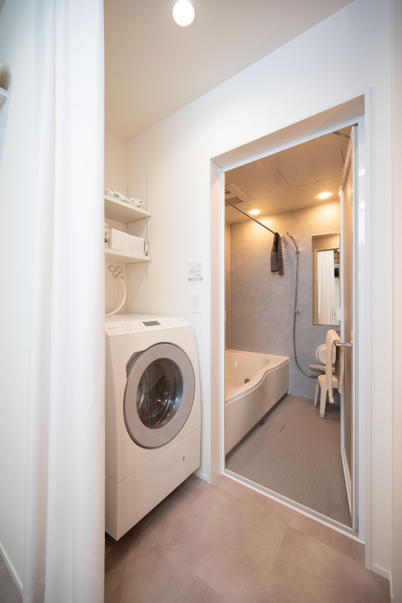 洗う・干す・しまうがコンパクトにまとまった水まわり動線。