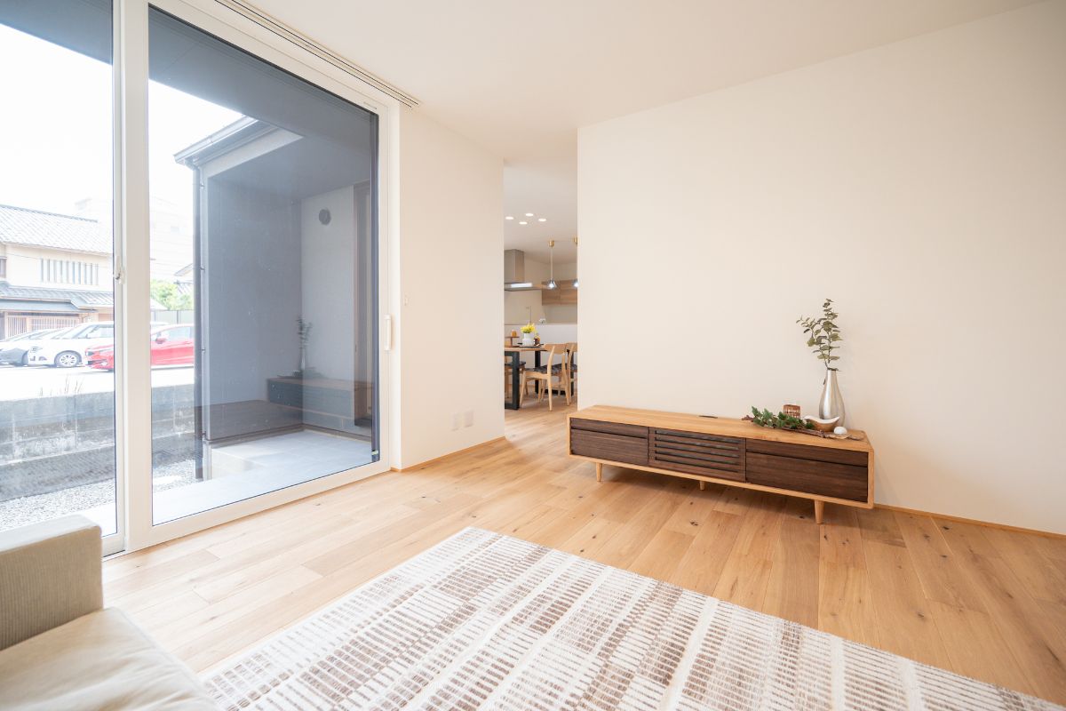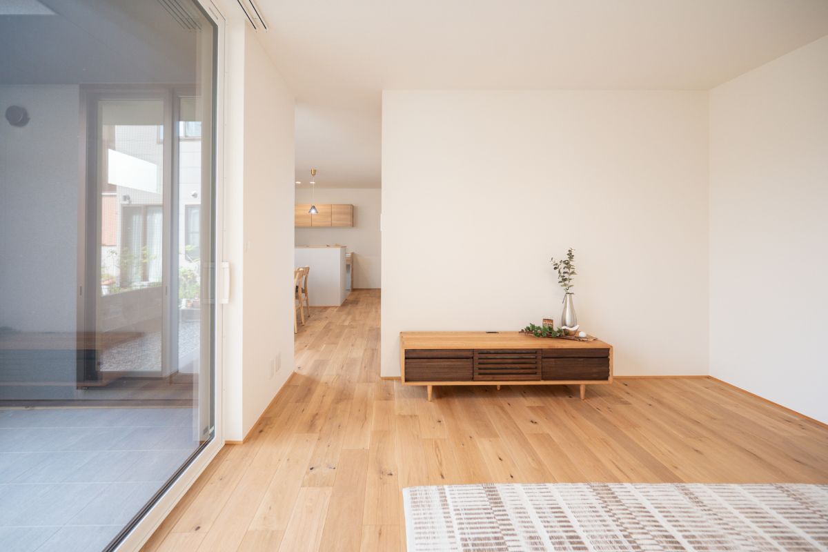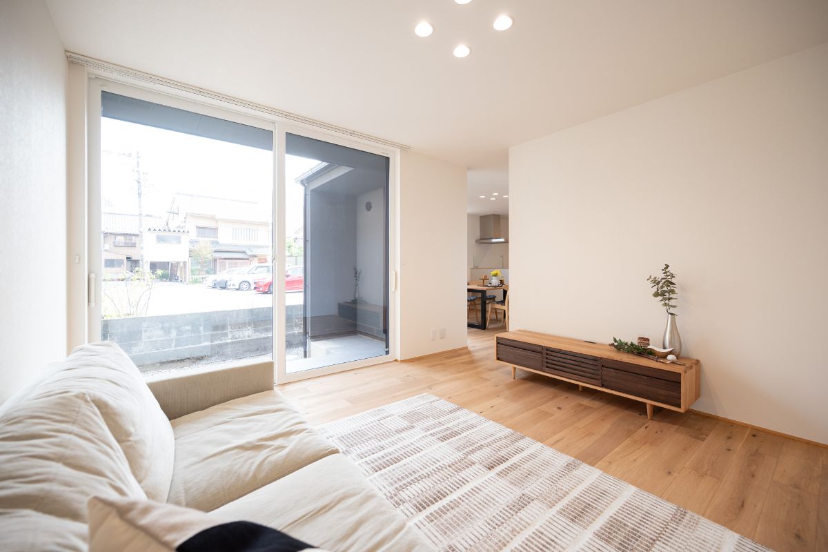 やわらかな自然光が差し込み、家族がソファでくつろぐ時間も心地よく。