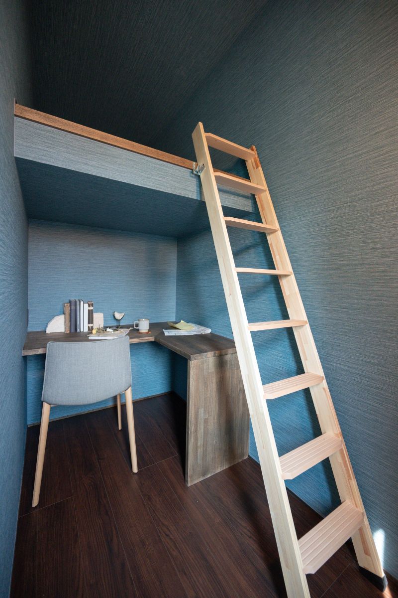 奥にはロフト付きの書斎を設け、仕事や趣味に集中できる個室空間も確保。