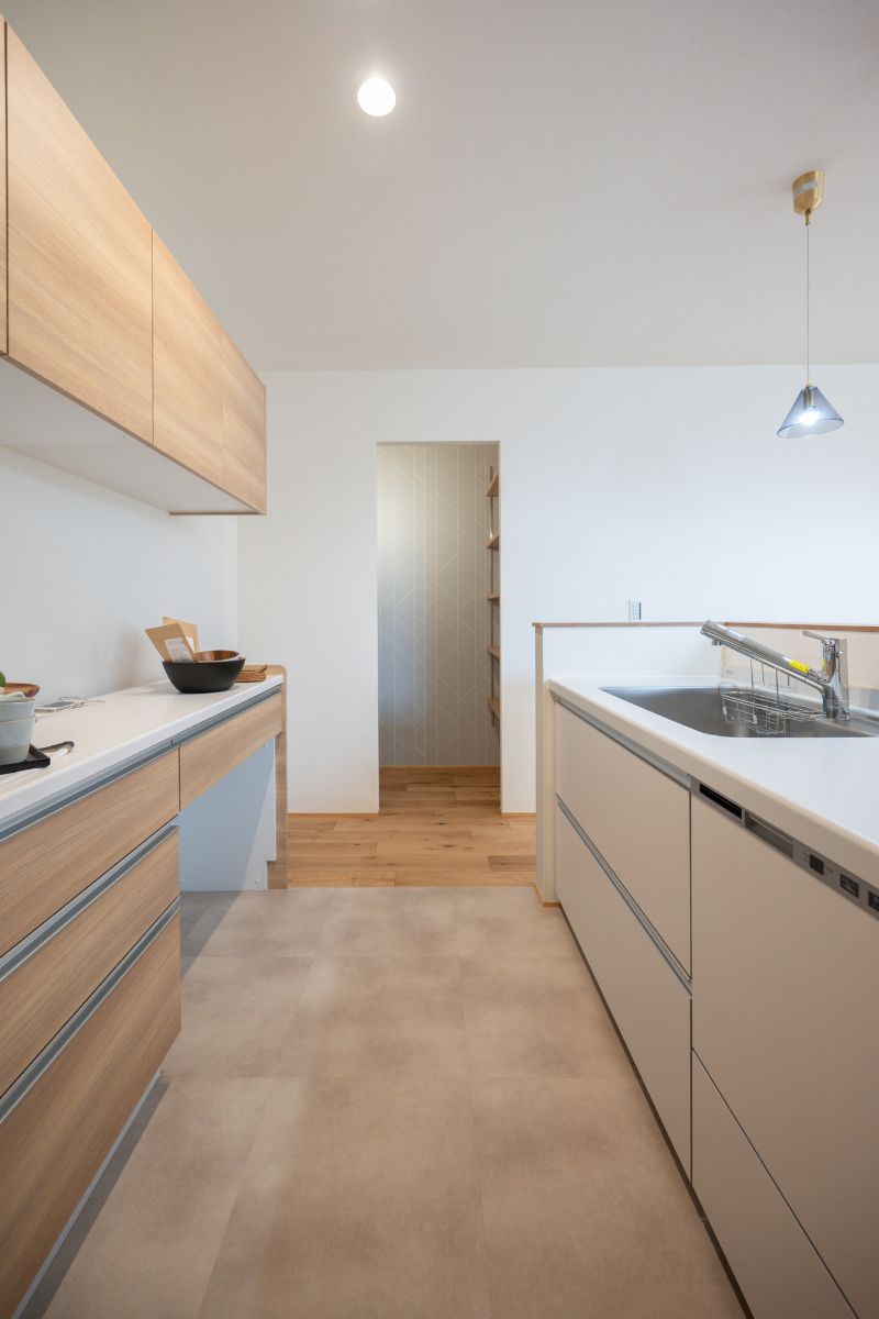 キッチンに立つ人と食卓に座る人の距離が近く、料理をしながら会話が生まれます。